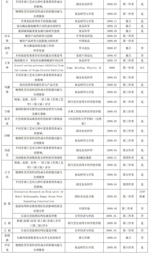 2009年发表论文一览表