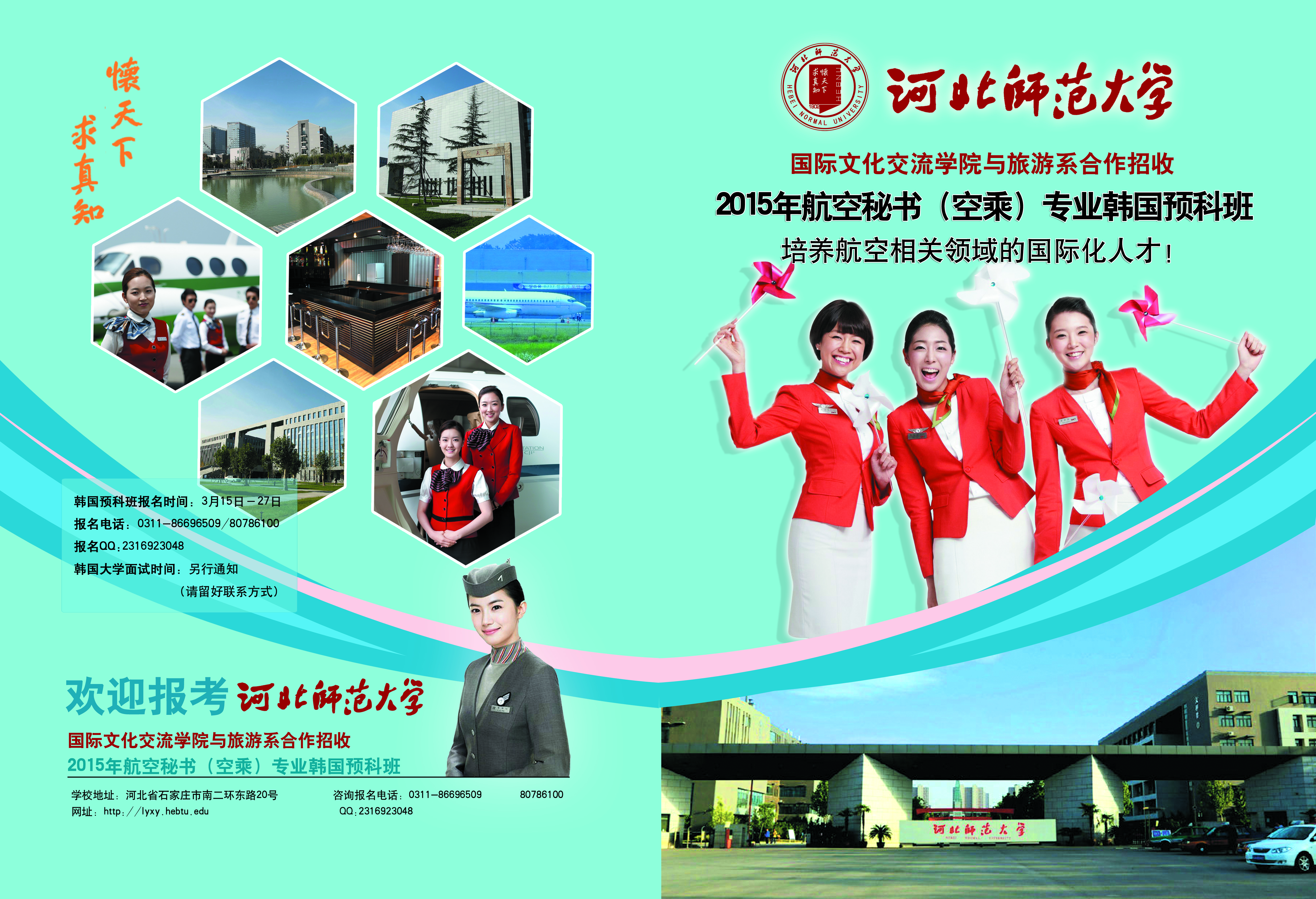 河北师范大学2015年航空秘书(空乘)专业韩国预科班招生简章
