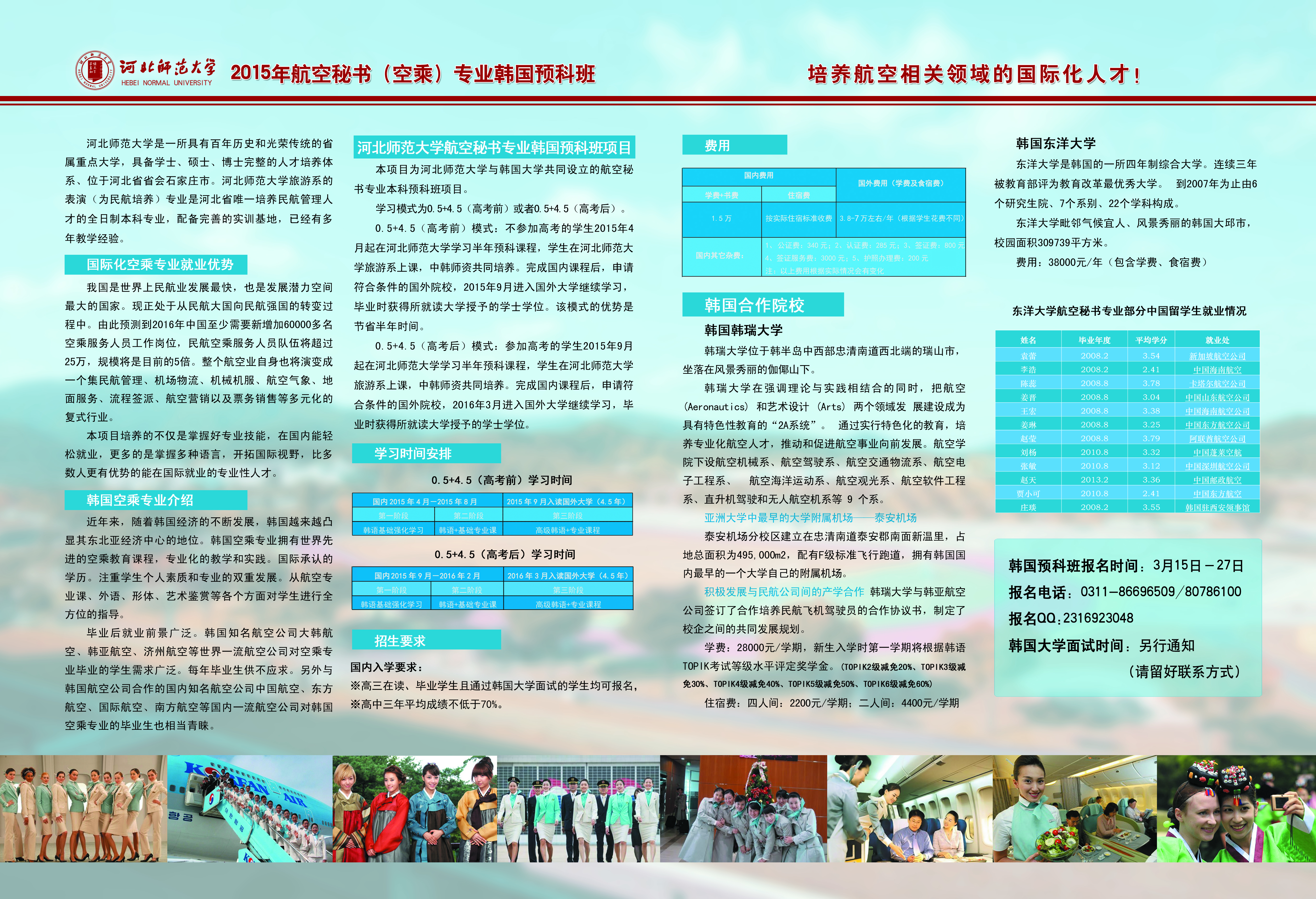 附件:河北师范大学2015年航空秘书(空乘)专业韩国预科班招生简章