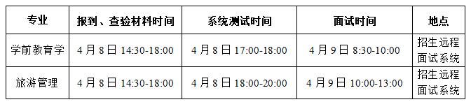 学前教育学和旅游管理两个专业调剂复试方式为网络远程复试,在学信网招生远程面试系统中进行。